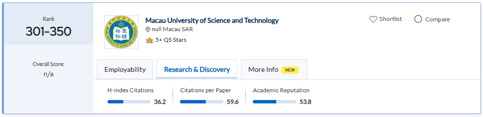 澳科大19個學科上榜上海軟科世界一流學科排名