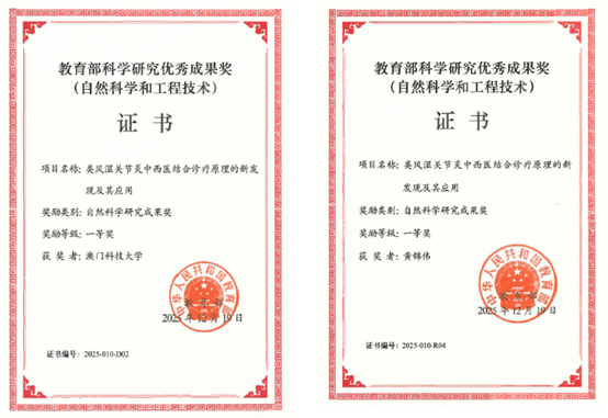 澳科大黃錦偉教授榮獲2025年教育部科學研究優秀成果獎一等獎