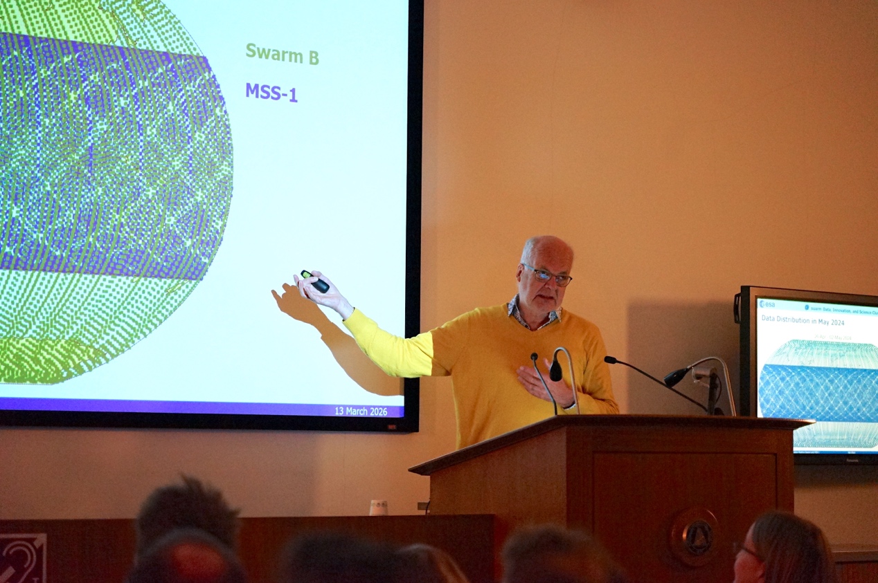 圖: Swarm衛星首席科學家Nils Olsen教授在會議上做報告
