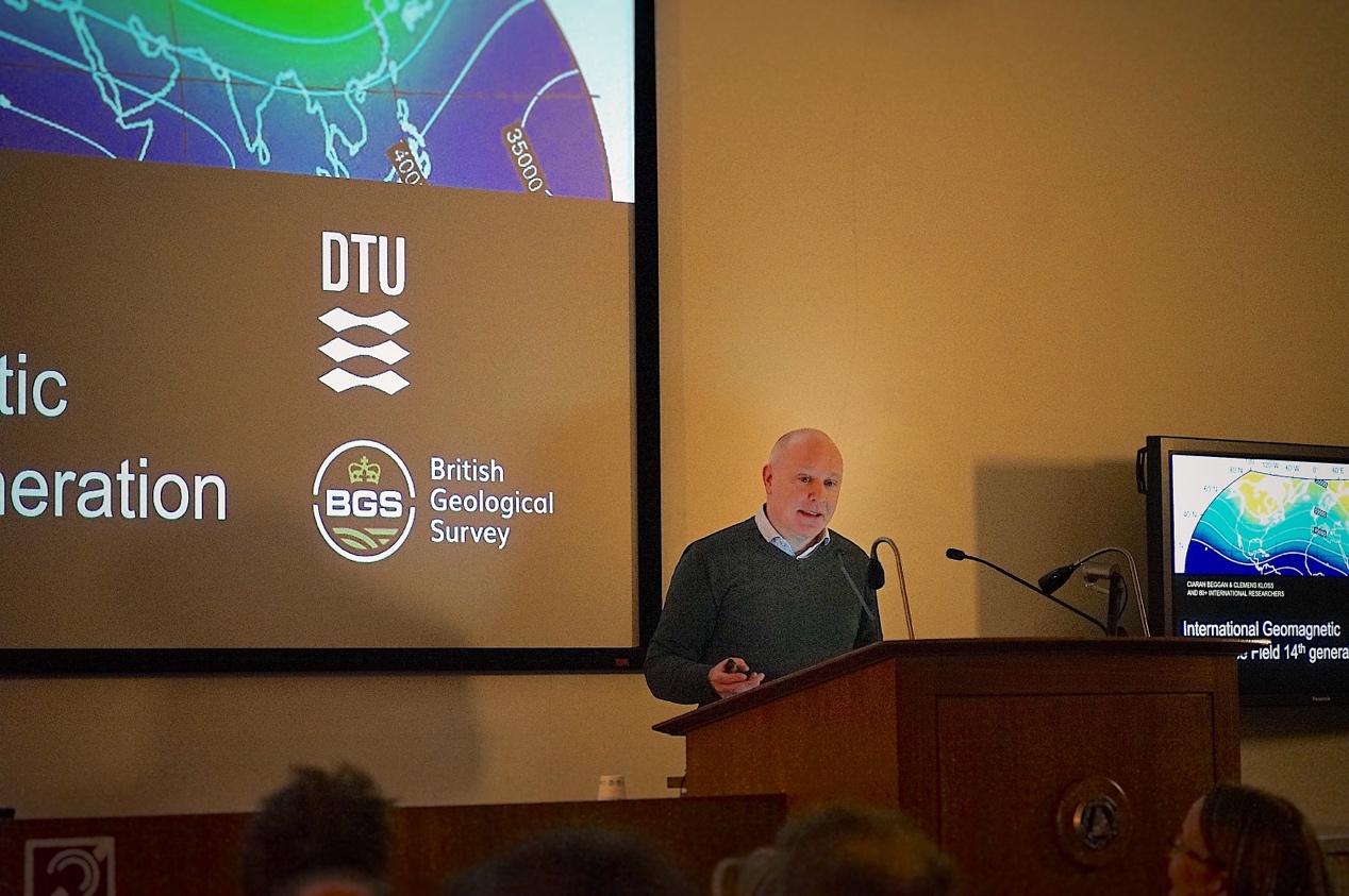 圖:英國地質調查局Ciaran Beggan在會議上做報告