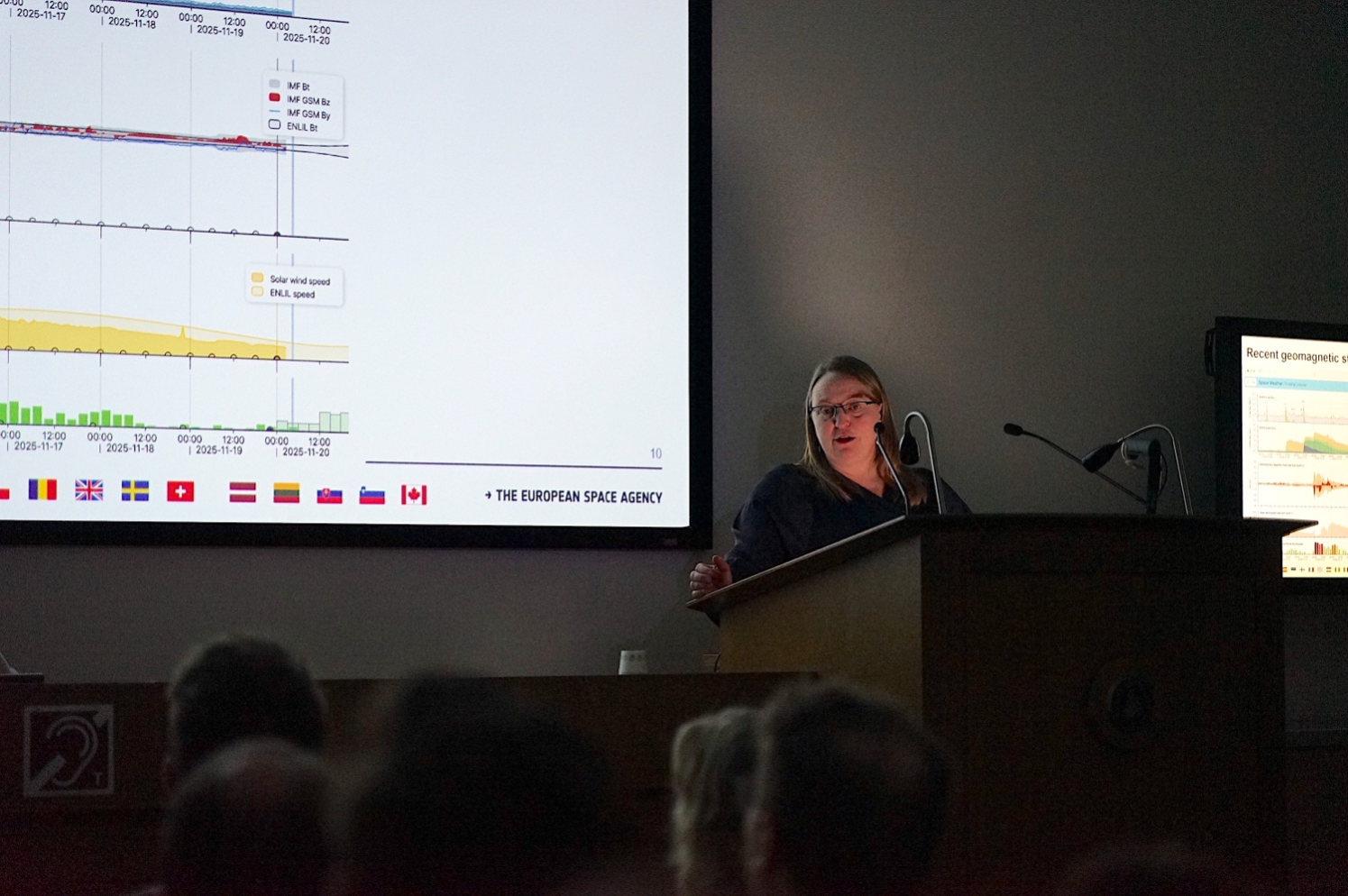 圖:歐洲航天局Swarm衛星任務主任Anja Strømme博士在會議上做報告